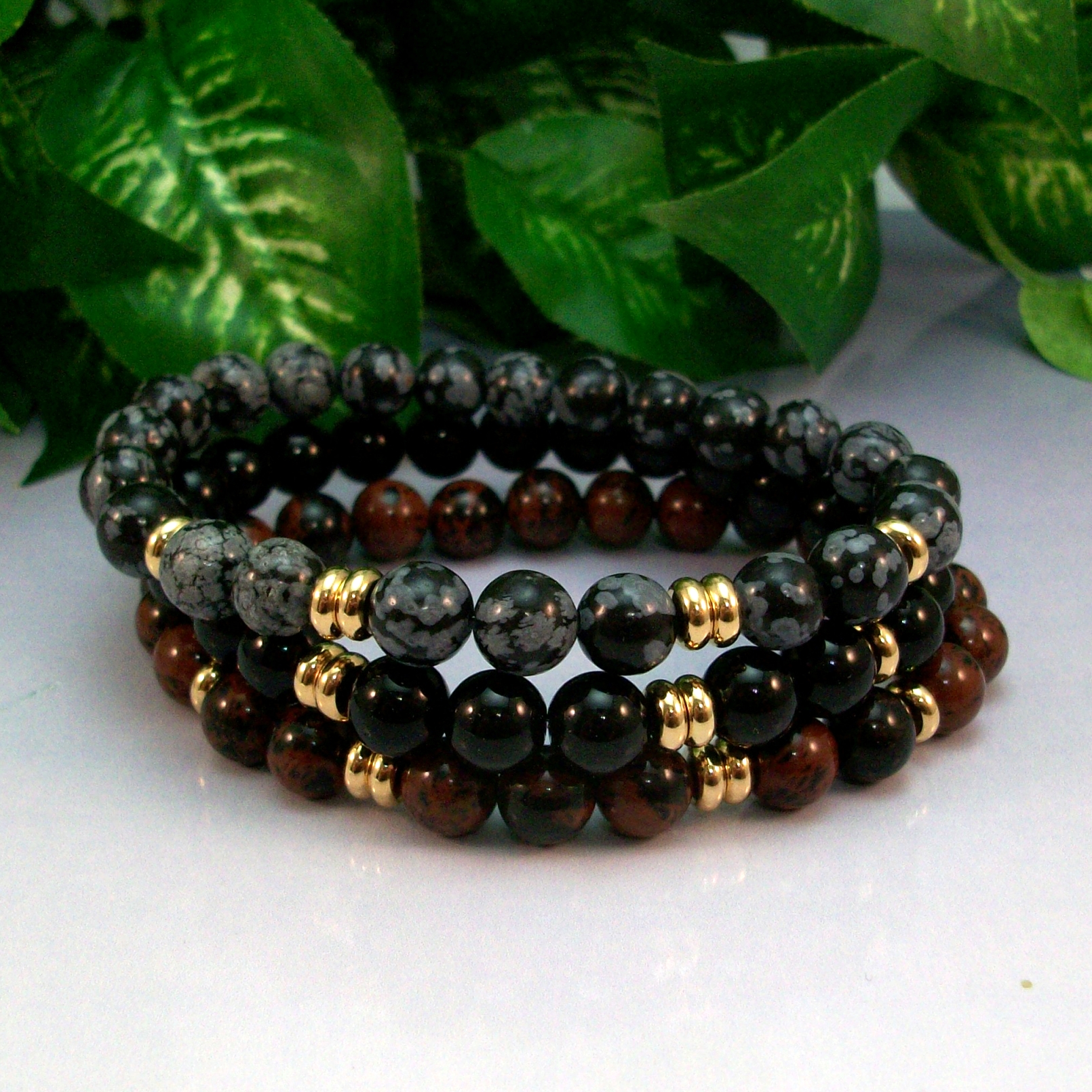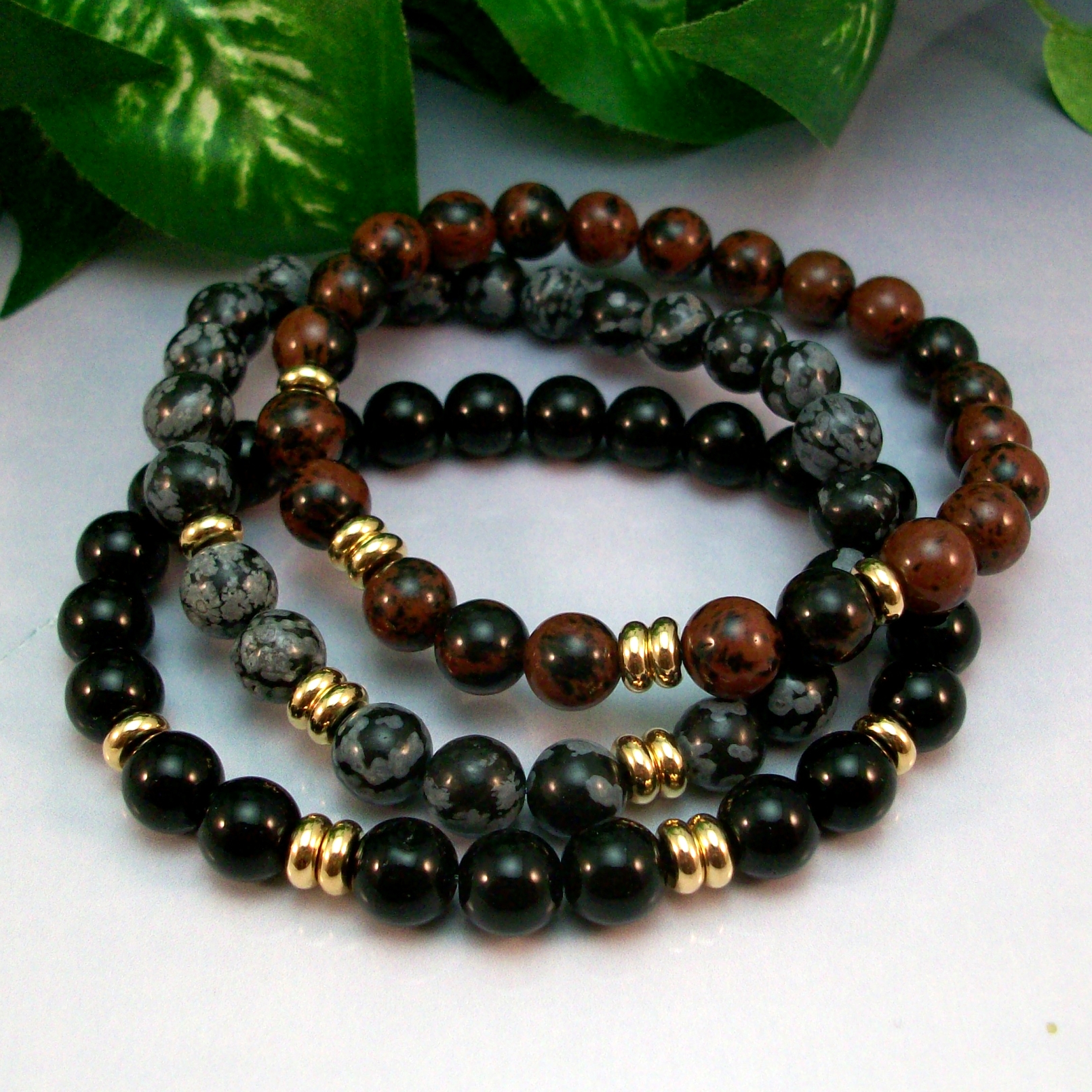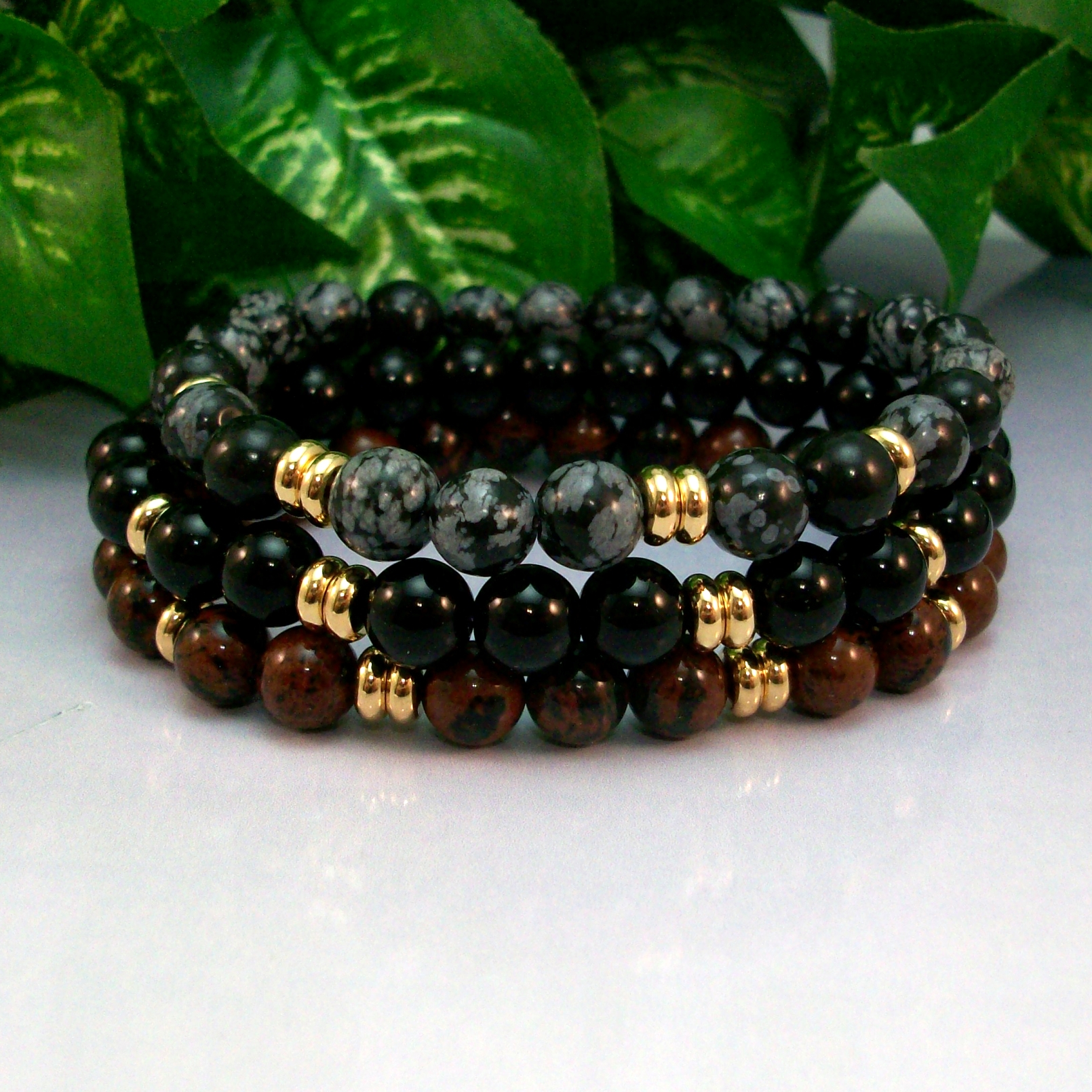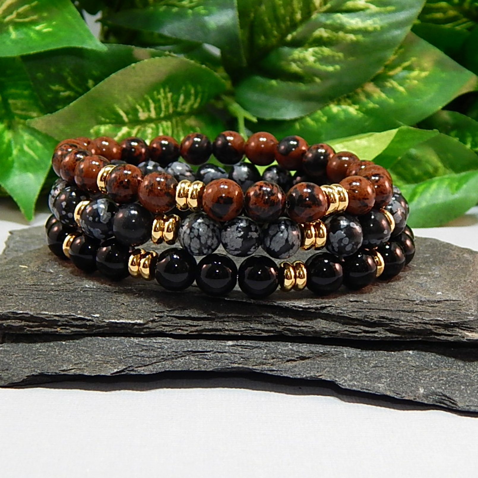Obsidian Gemstone Trio Bracelets – Protection, Strength & Everyday Style