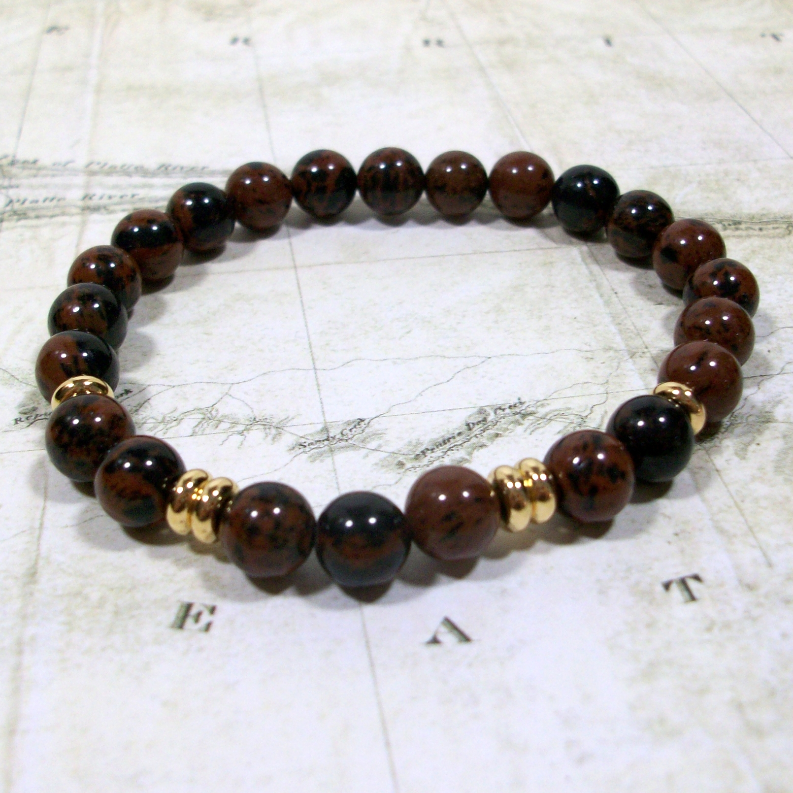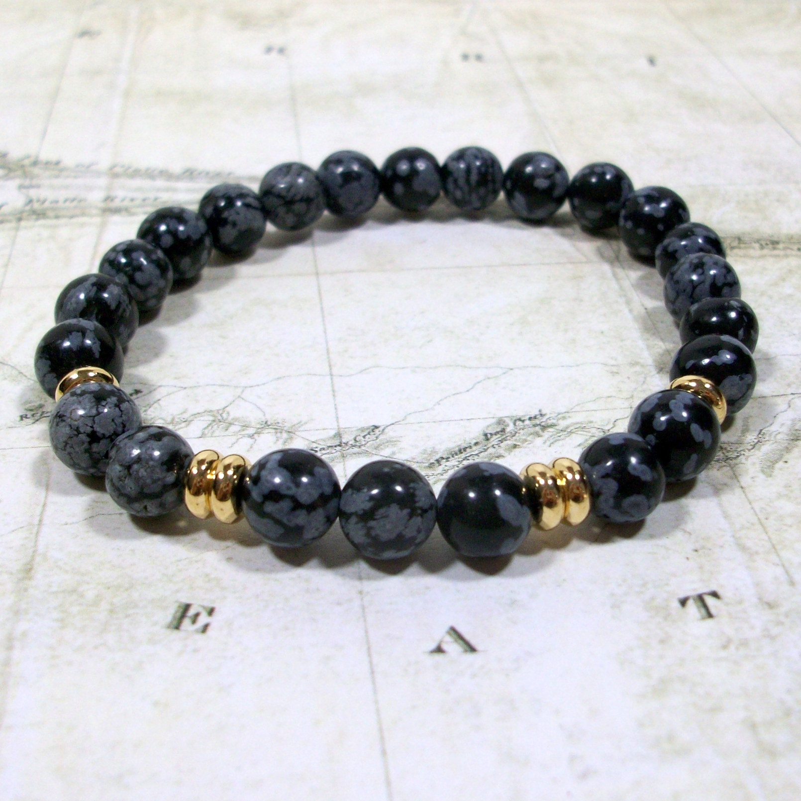 This trio of 7in (17.78cm) bracelets feels like carrying a shield of quiet strength with you wherever you go. The deep glow of Obsidian is known for grounding energy, offering protection, and keeping negativity at bay, while the stacking design lets you wear them together for bold energy or mix and match for everyday style. With their easy stretch fit, they slip on effortlessly and become your daily reminder to stay strong, centered, and let your quiet magic shine. 8mm Black, Mahogany and Snowflake Obsidian round beads accented with gold heishi spacer beads.