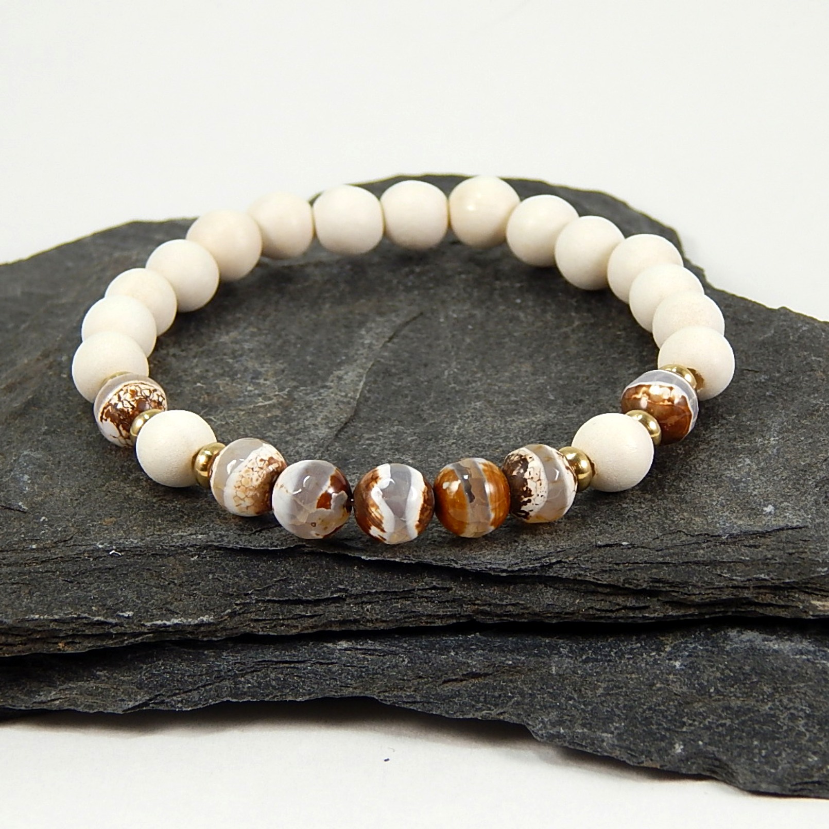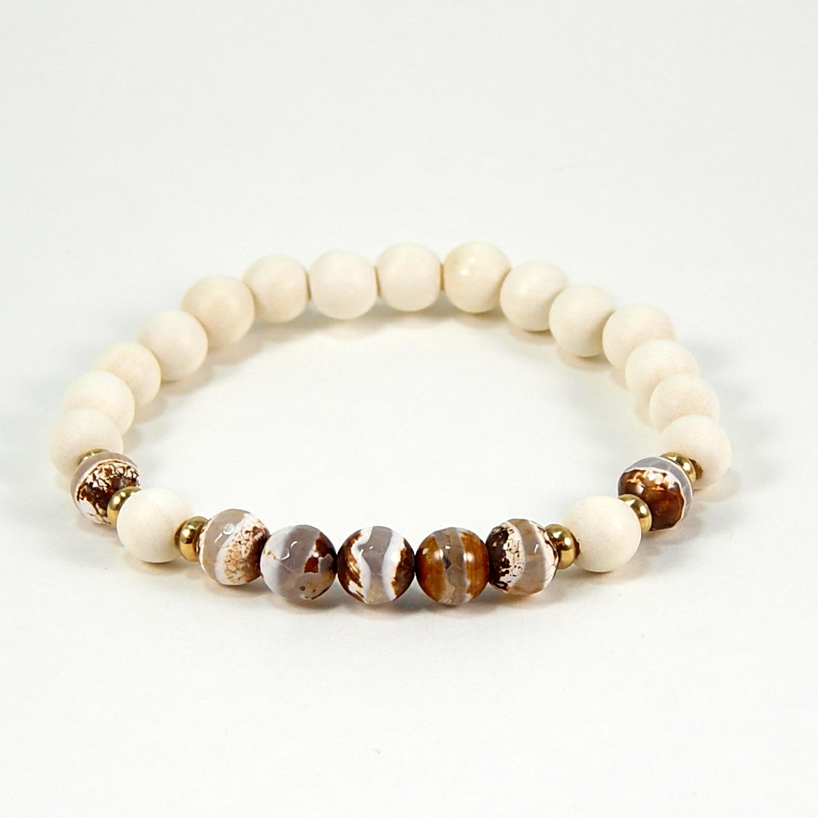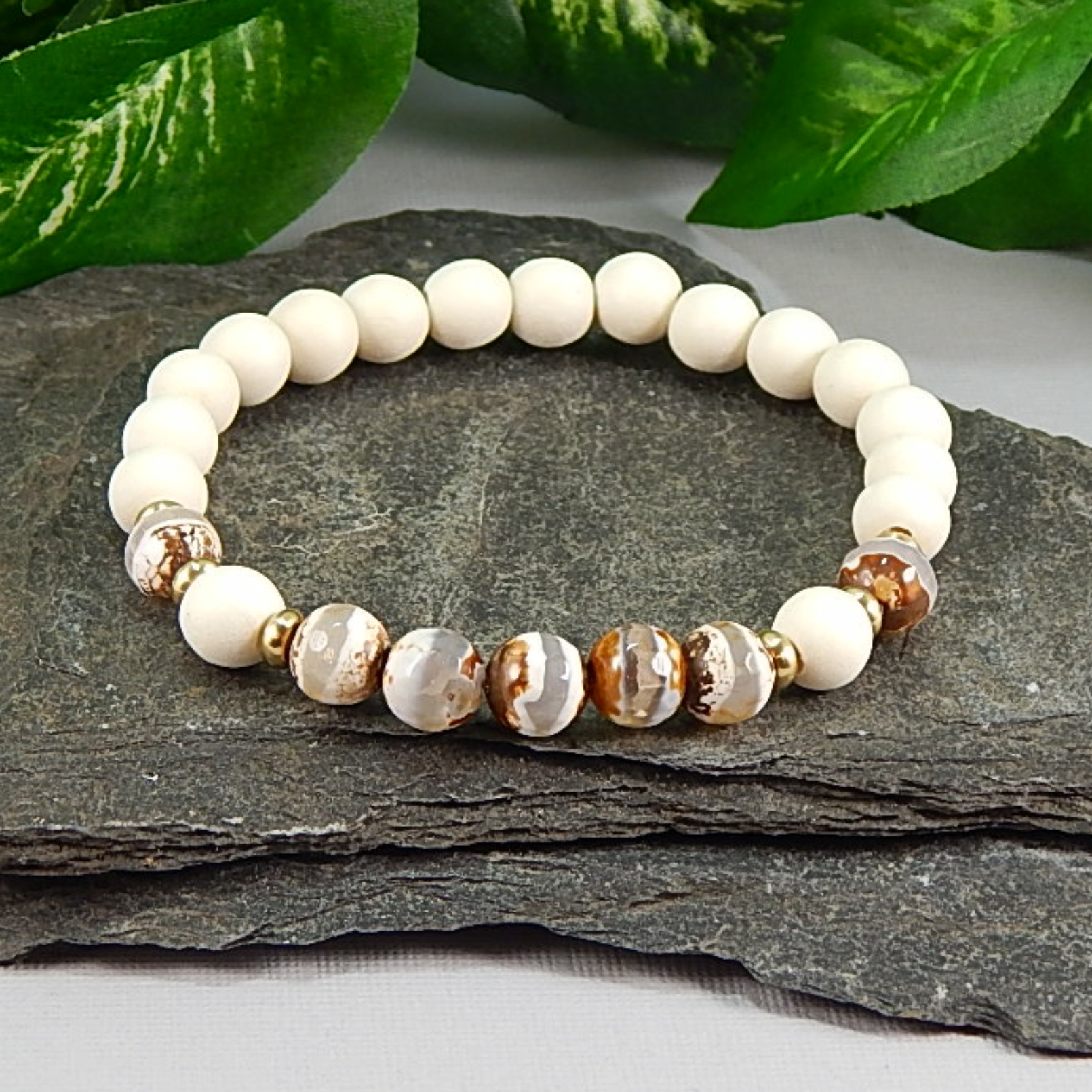 Tibetan Agate & Whitewood Bracelet – Protection, Balance & Spiritual Harmony