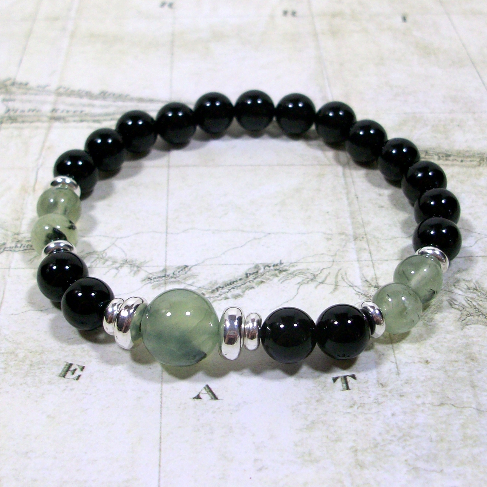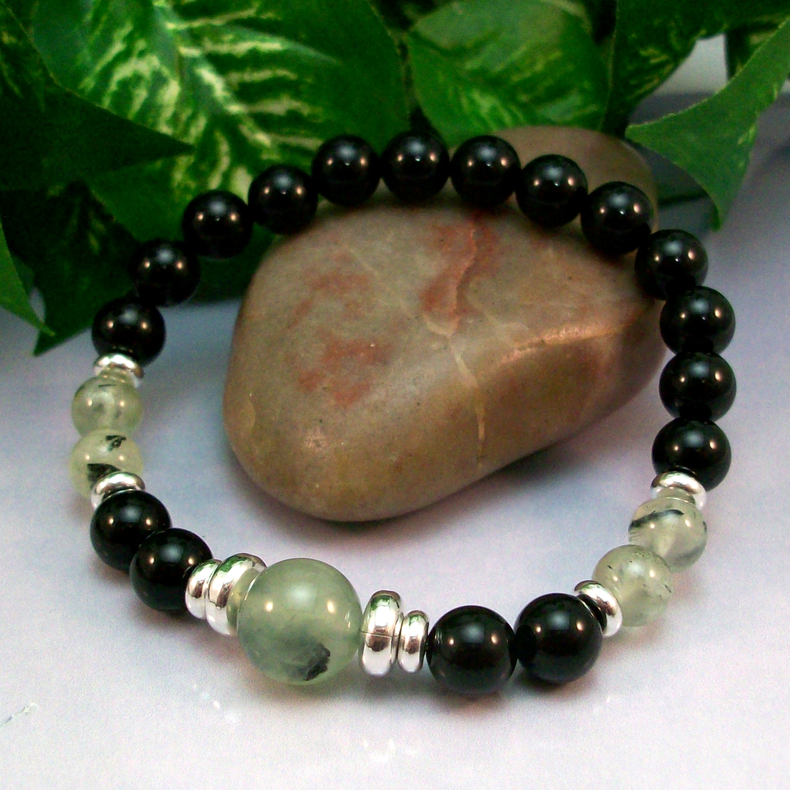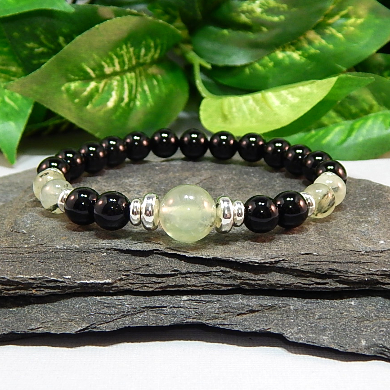 Prehnite & Black Agate Bracelet – Healing, Protection & Everyday Balance