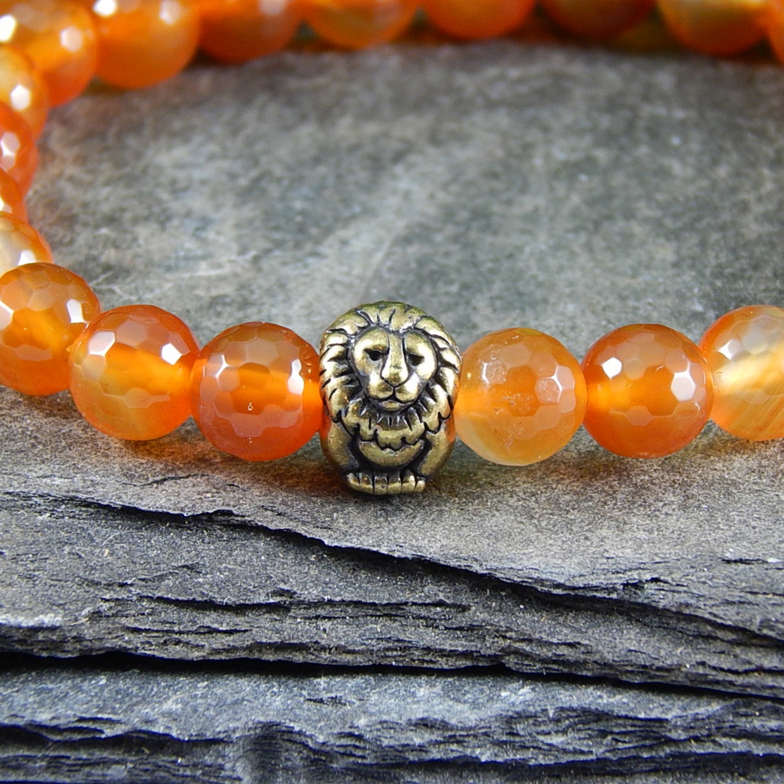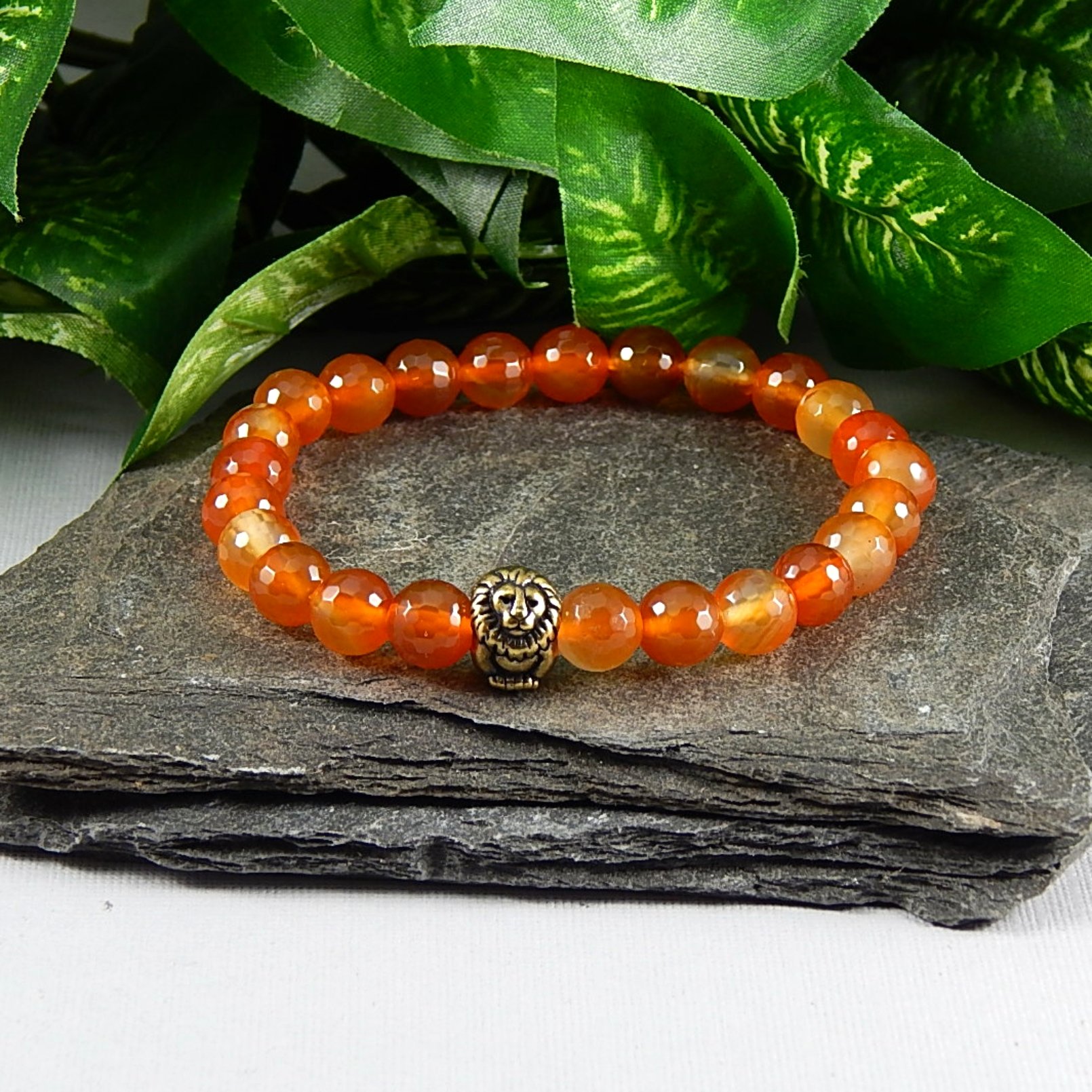 Faceted Carnelian Bracelet with Lion Focal – Courage, Vitality & Bold Style