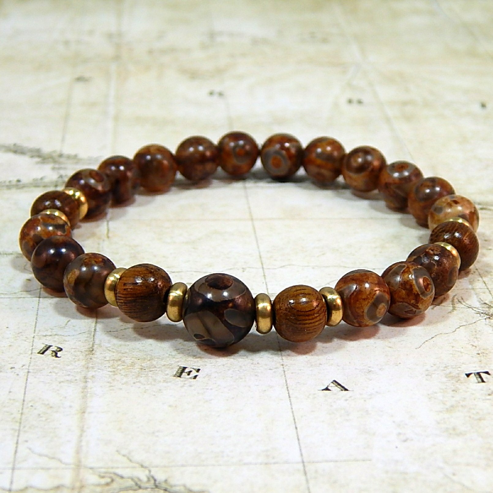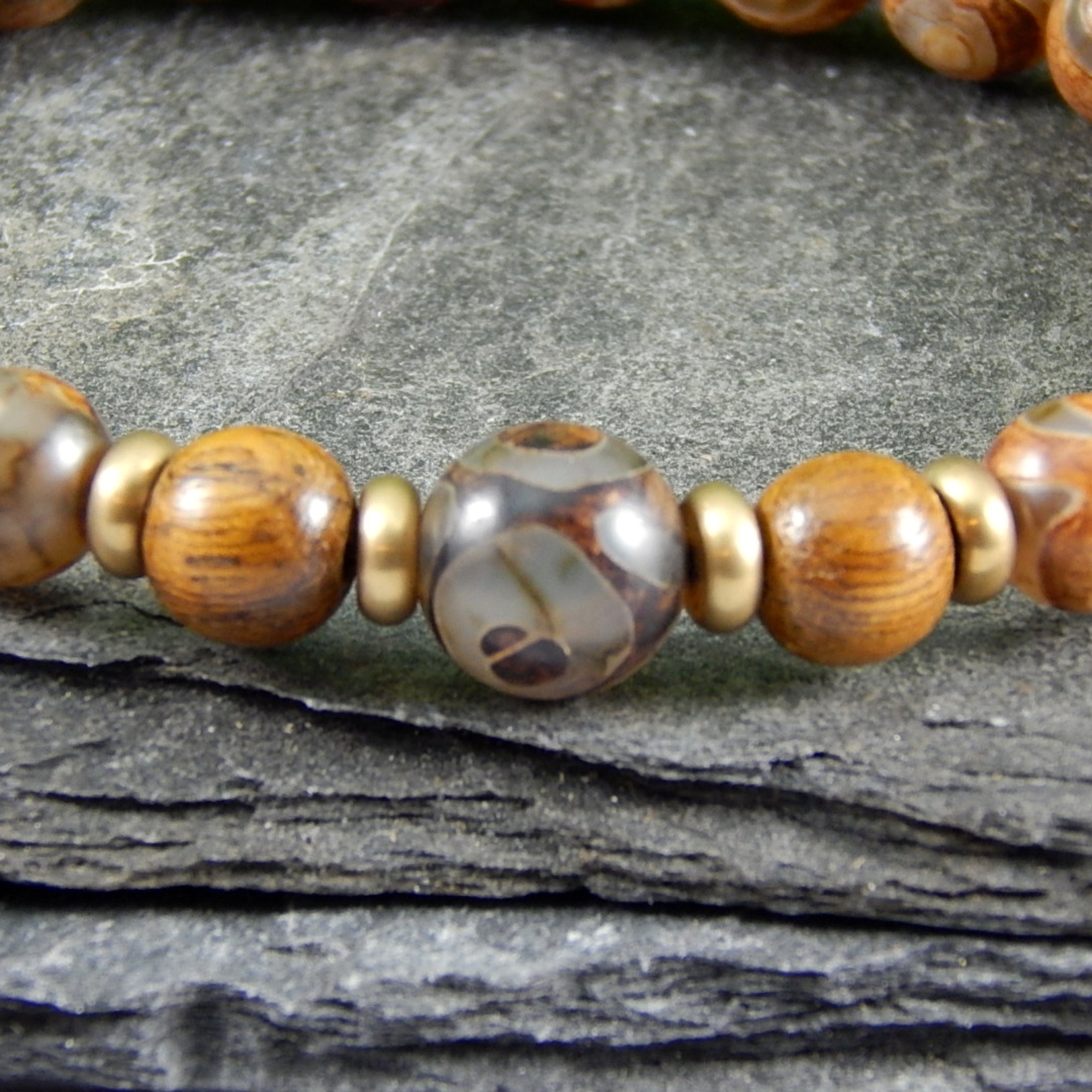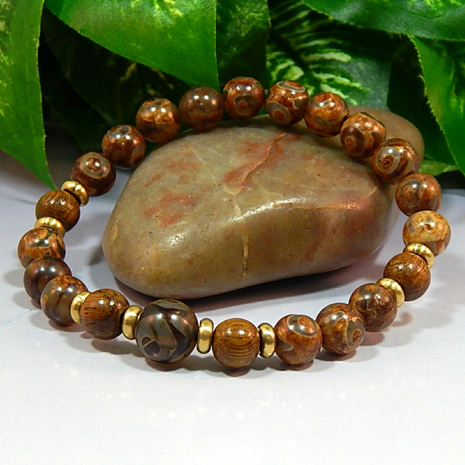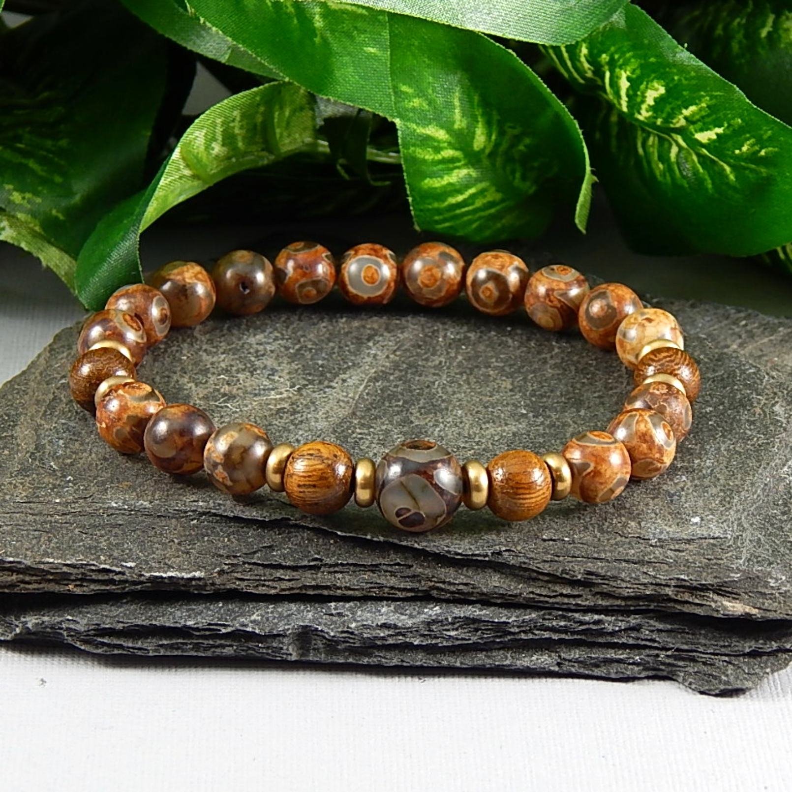 Tibetan Agate & Robles Wood Bracelet – Protection, Balance & Earthy Strength