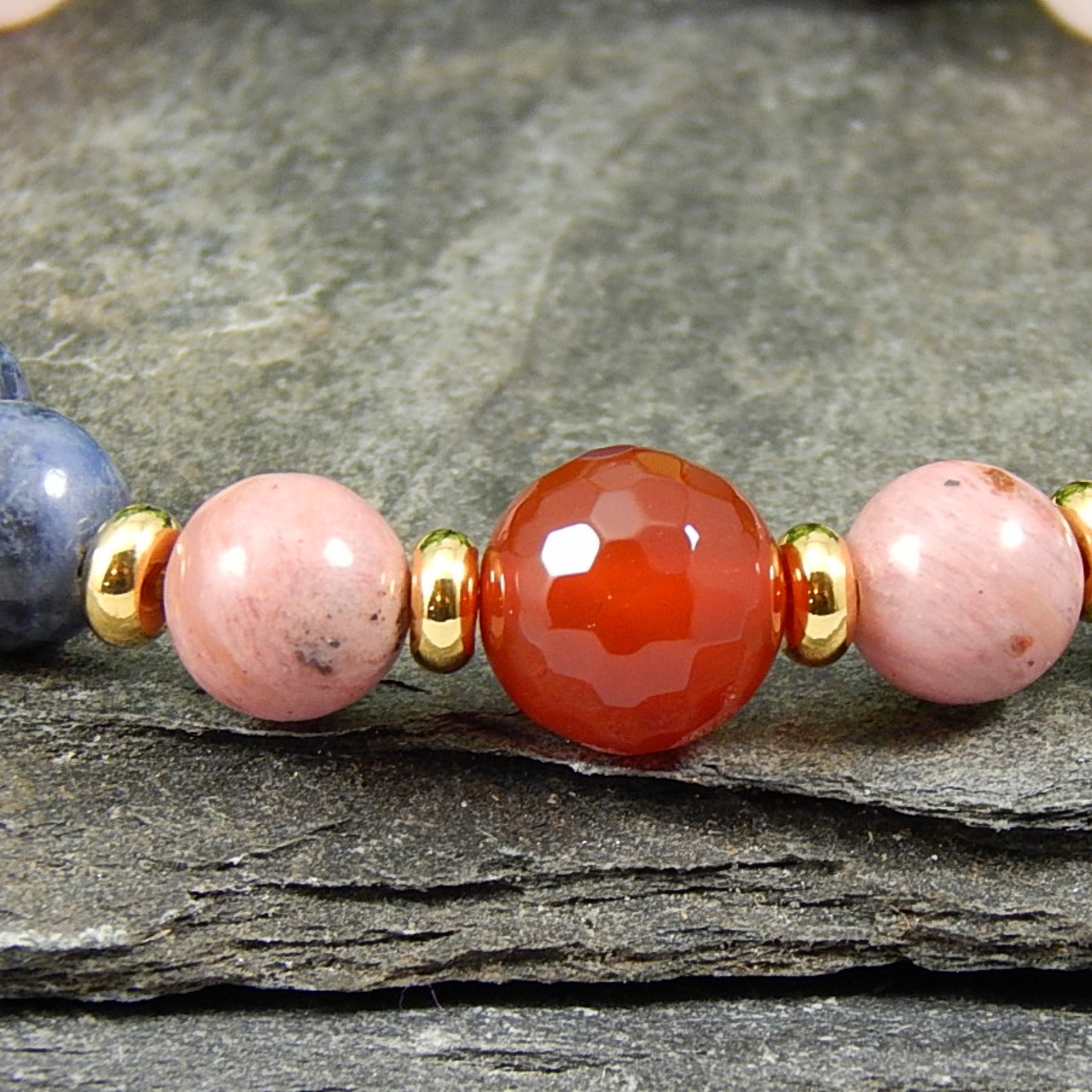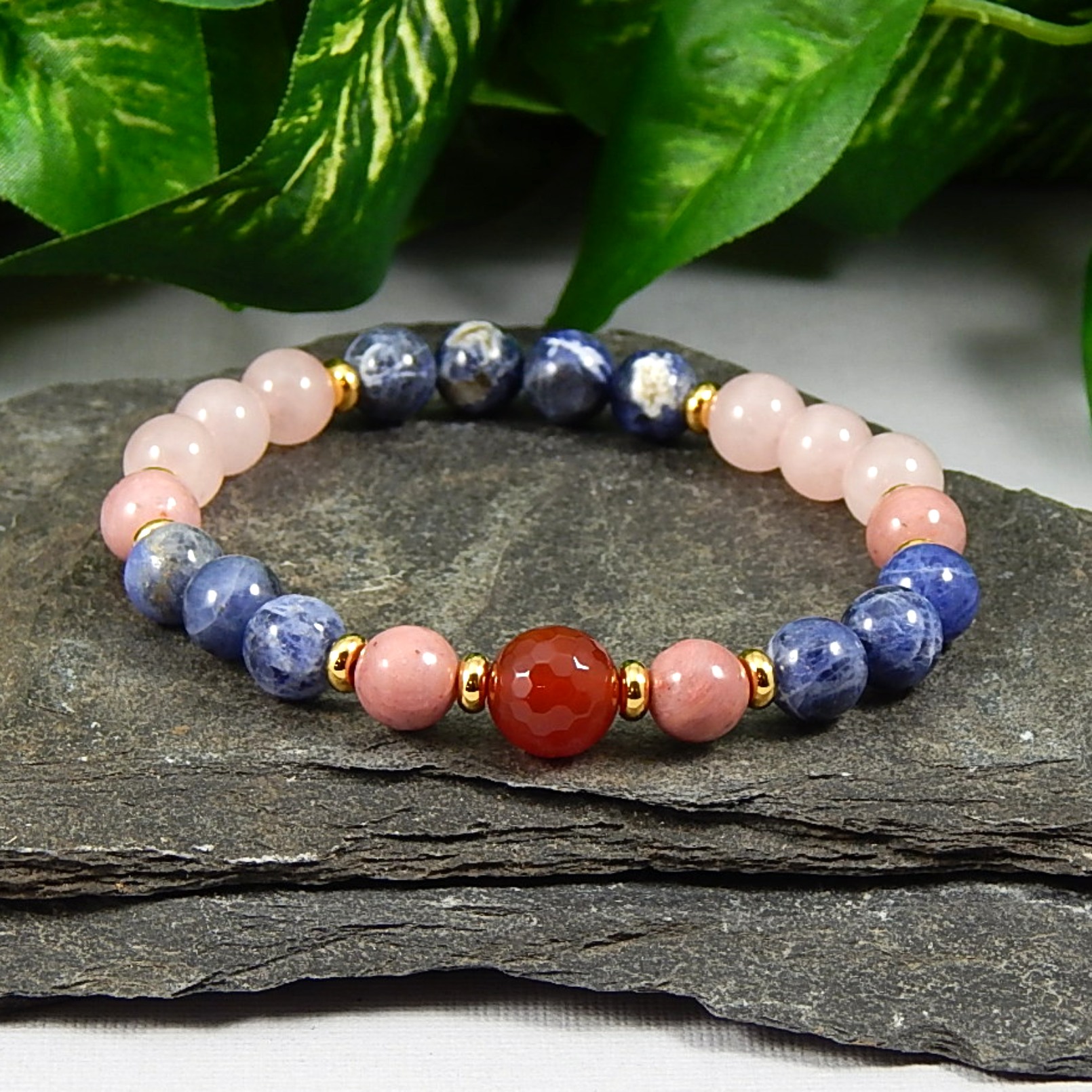 Carnelian, Rhodonite, Rose Quartz & Sodalite Bracelet – Energy, Love & Inner Harmony