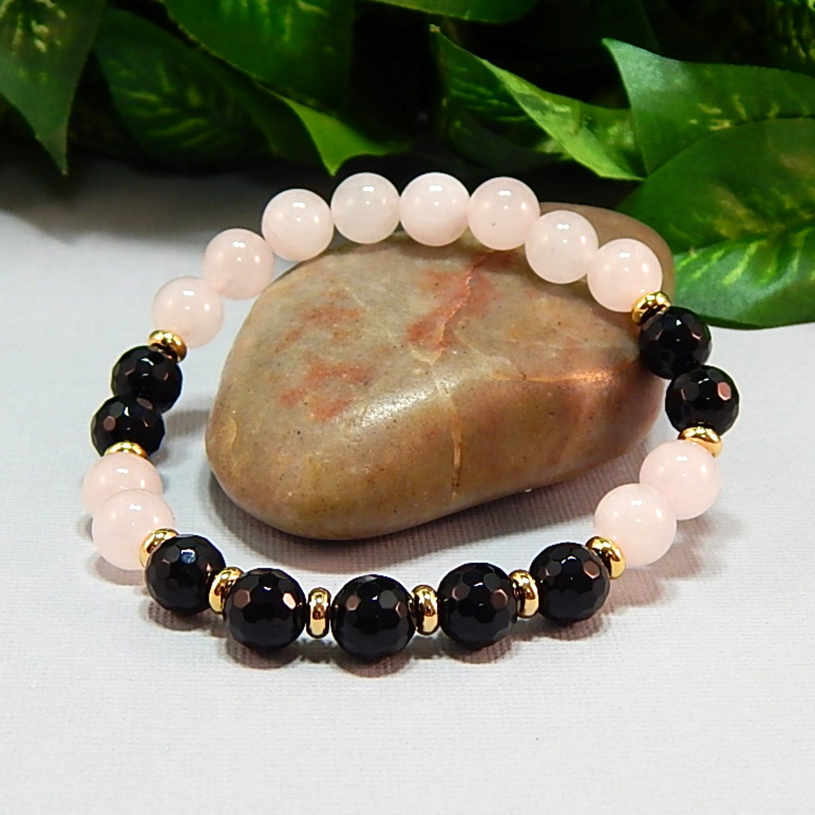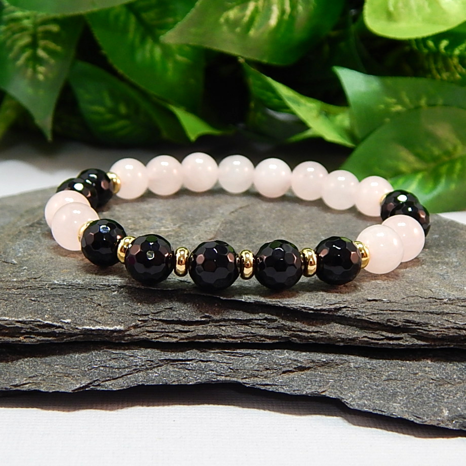 Faceted Black Agate & Rose Quartz Bracelet – Love, Protection & Everyday Magic