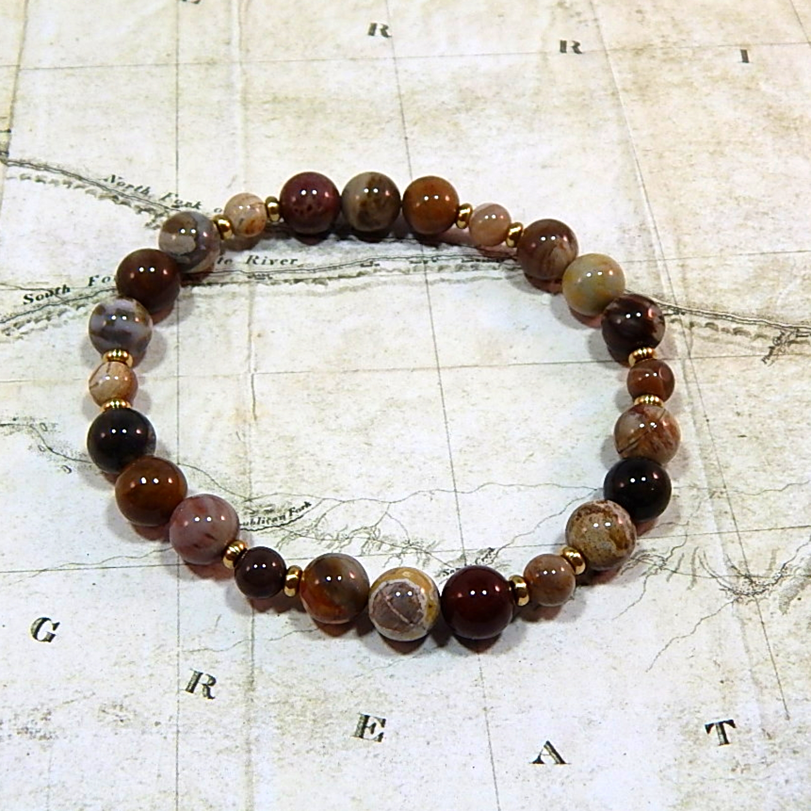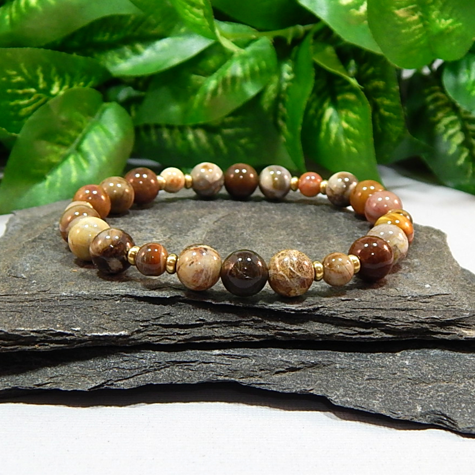 Petrified Wood Agate & Brass Bracelet – Earth Energy, Strength & Timeless Style