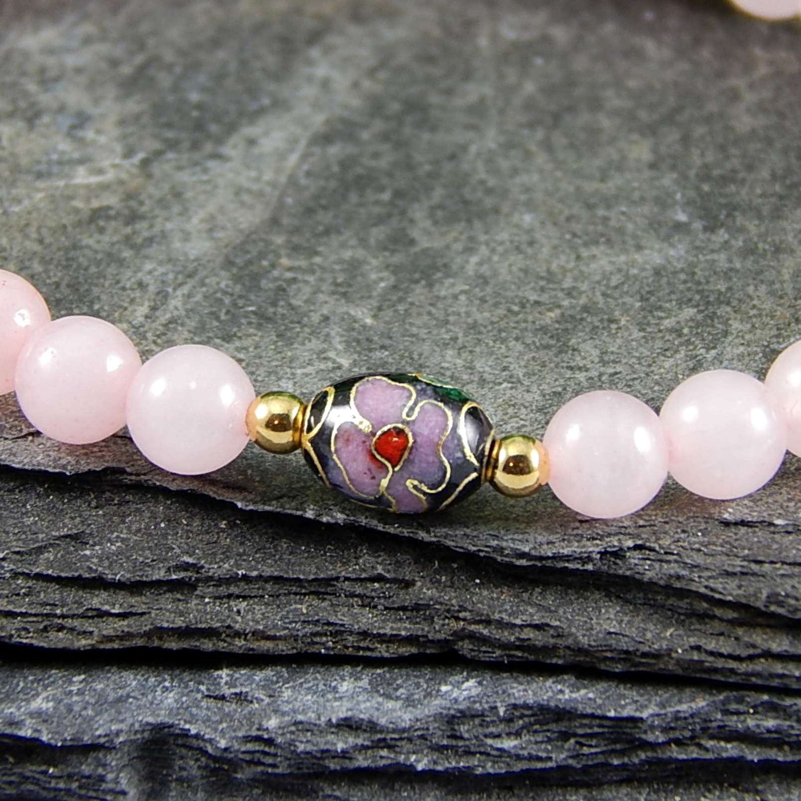 Rose Quartz Gemstone & Cloisonné Bead Stretch Bracelet – Love, Harmony & Timeless Elegance