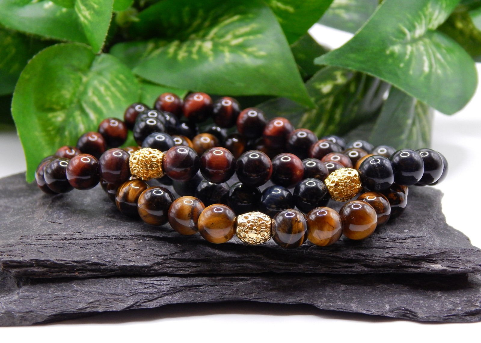 Tiger’s Eye Trio Gemstone Bracelets – Handmade Jewelry for Strength, Focus & Protection
