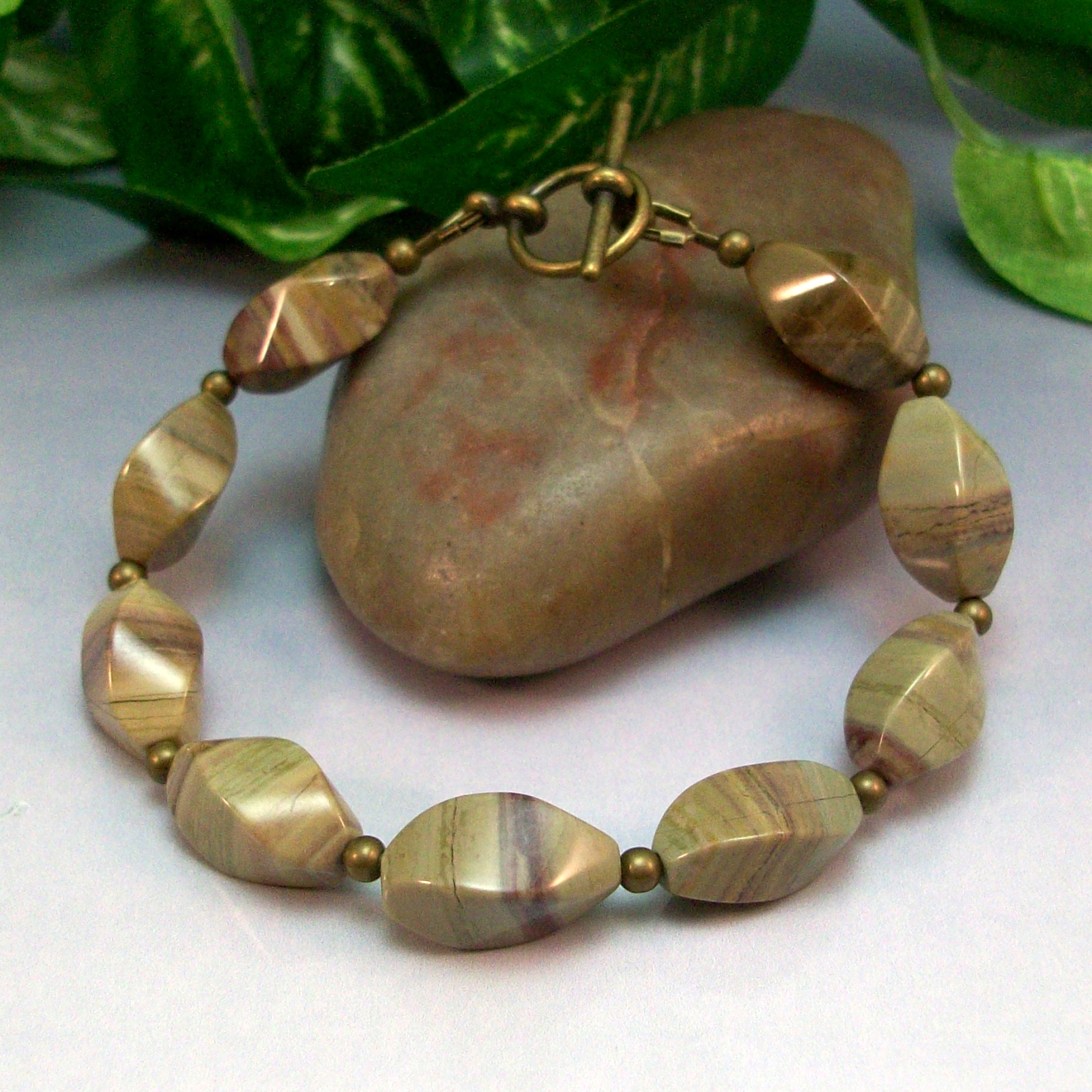 Porcelain Jasper Twisted Oval Gemstone & Brass Bracelet – Creativity, Balance & Earthy Elegance
