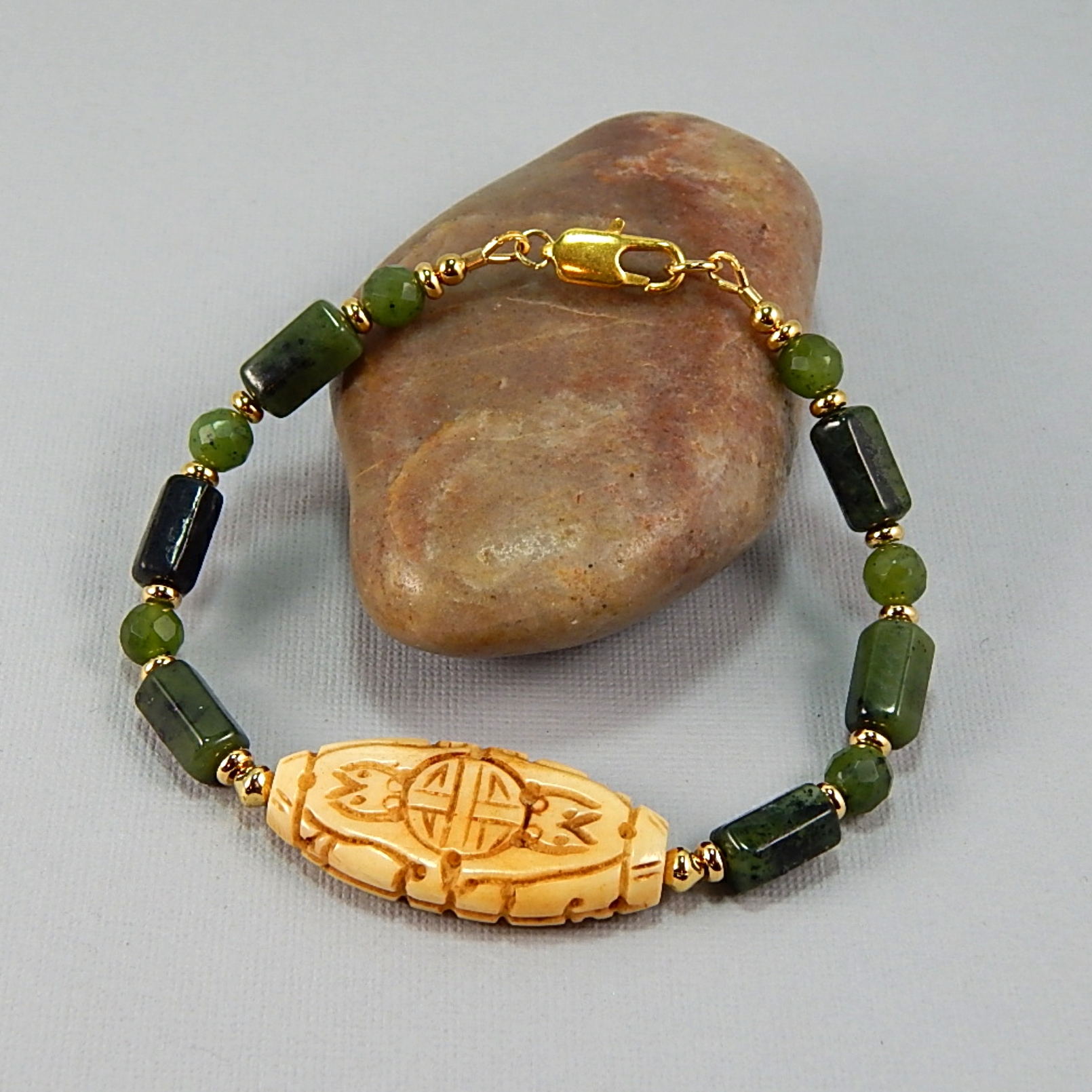 Nephrite Jade Gemstone & Bone Bracelet – Protection, Harmony & Ancient Earth Energy