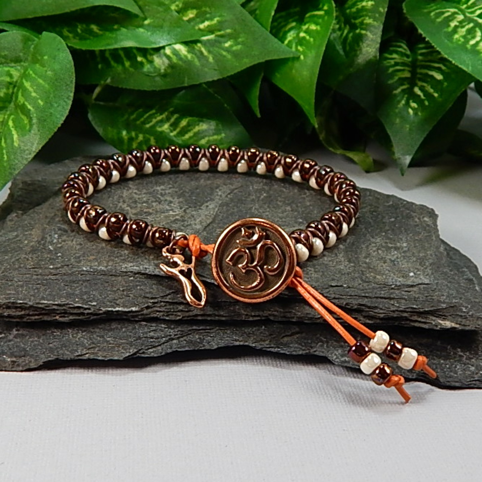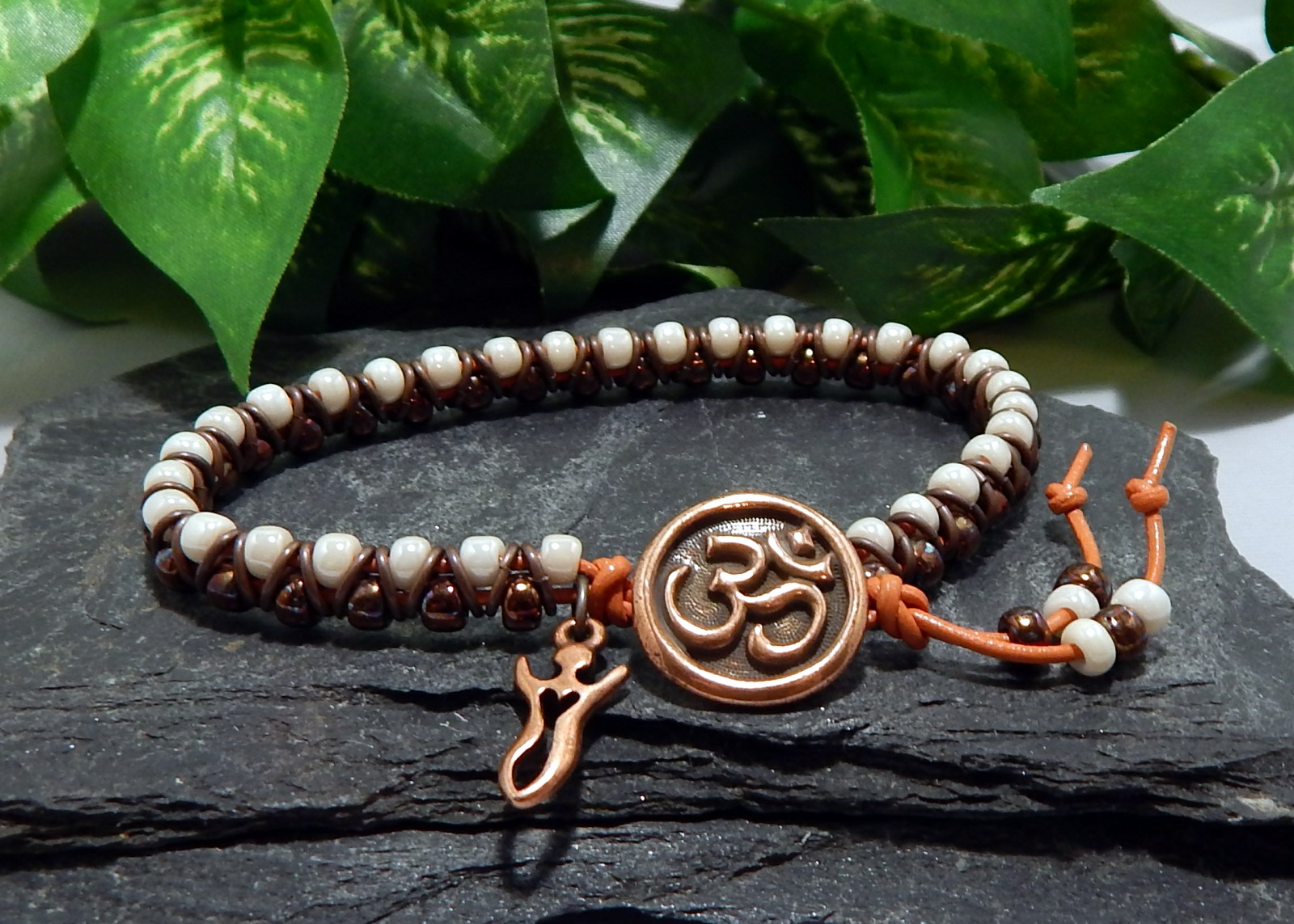Orange & Cream Goddess Bracelet – Handmade Jewelry with Copper Om Charm