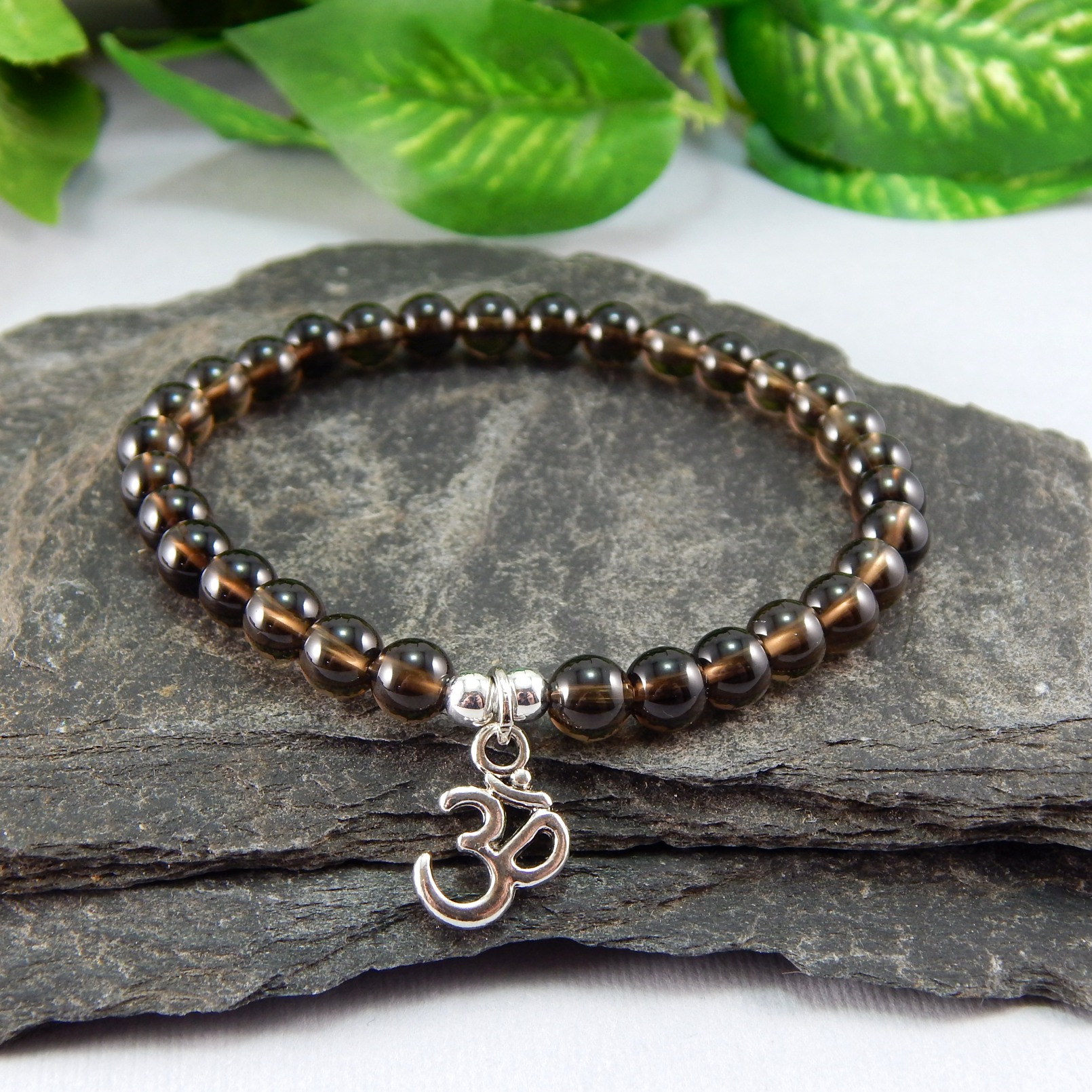 Smokey Quartz Yoga Bracelet with Om Charm – Grounding, Protection & Spiritual Balance