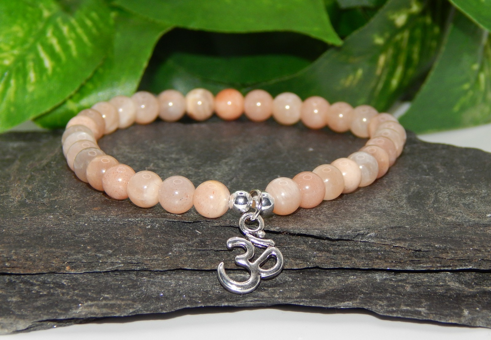 This bracelet is like carrying a little burst of sunshine with you. The warm glow of Sunstone is known for sparking joy, vitality, and confidence, making it the perfect companion for yoga practice or everyday wear. Its easy stretch design slips on effortlessly and adds a touch of radiant energy to your style, reminding you to shine bright, stay grounded, and embrace the magic of your own light. 6mm Sunstone beads accented with silver spacer beads and a 12x7mm silver Om charm.