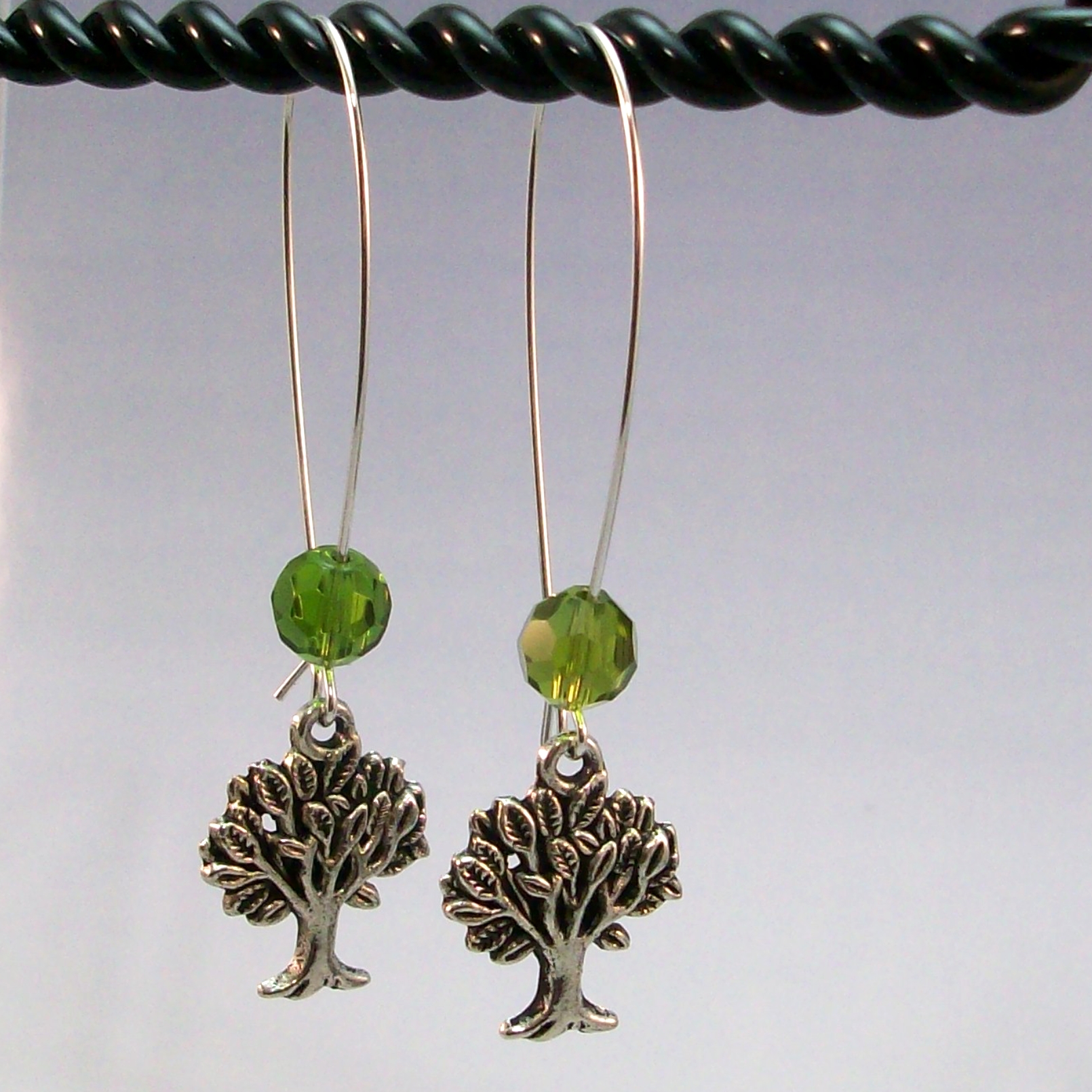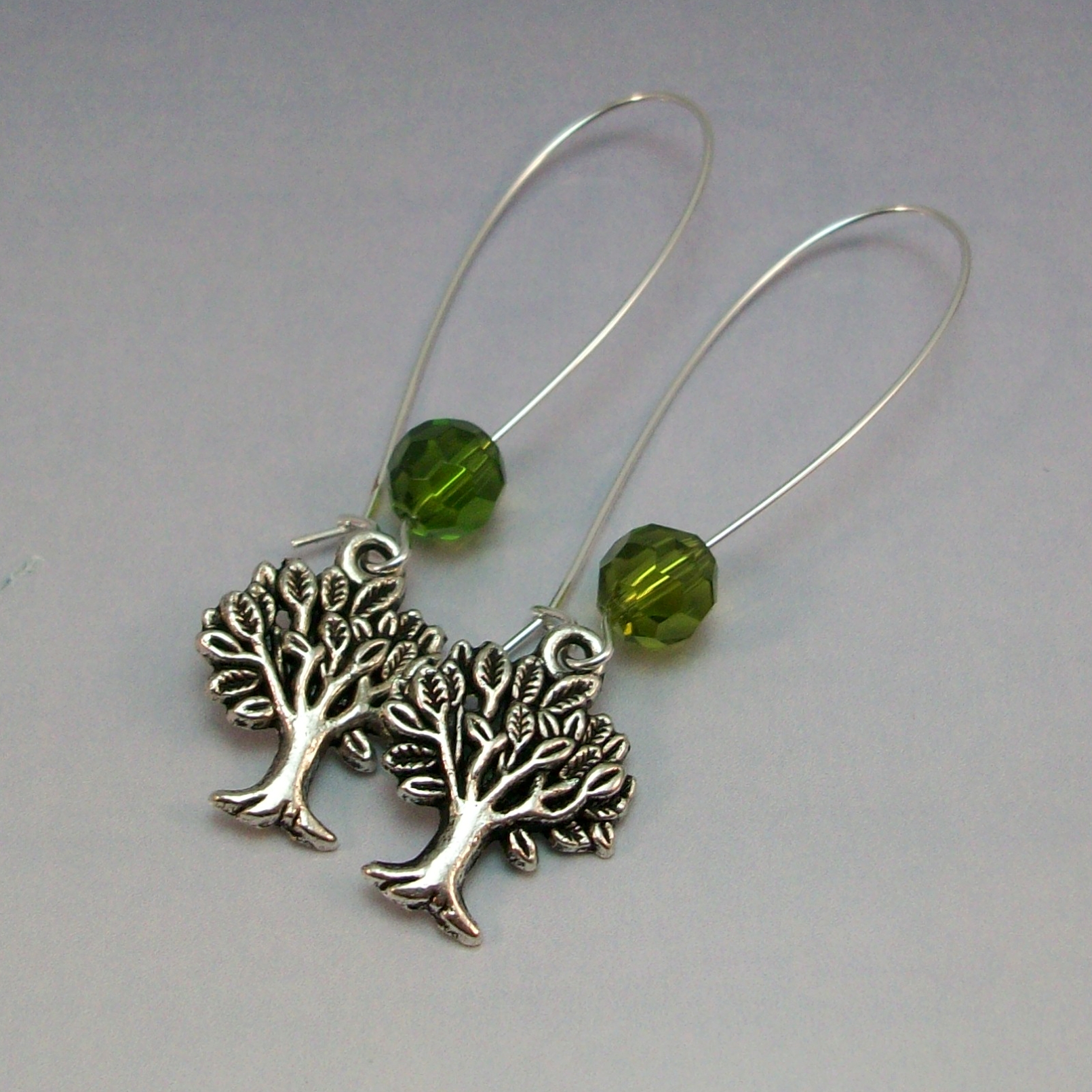 Olivine Crystal Tree of Life Earrings – Handmade Long Dangle Jewelry with Hypoallergenic Earwires