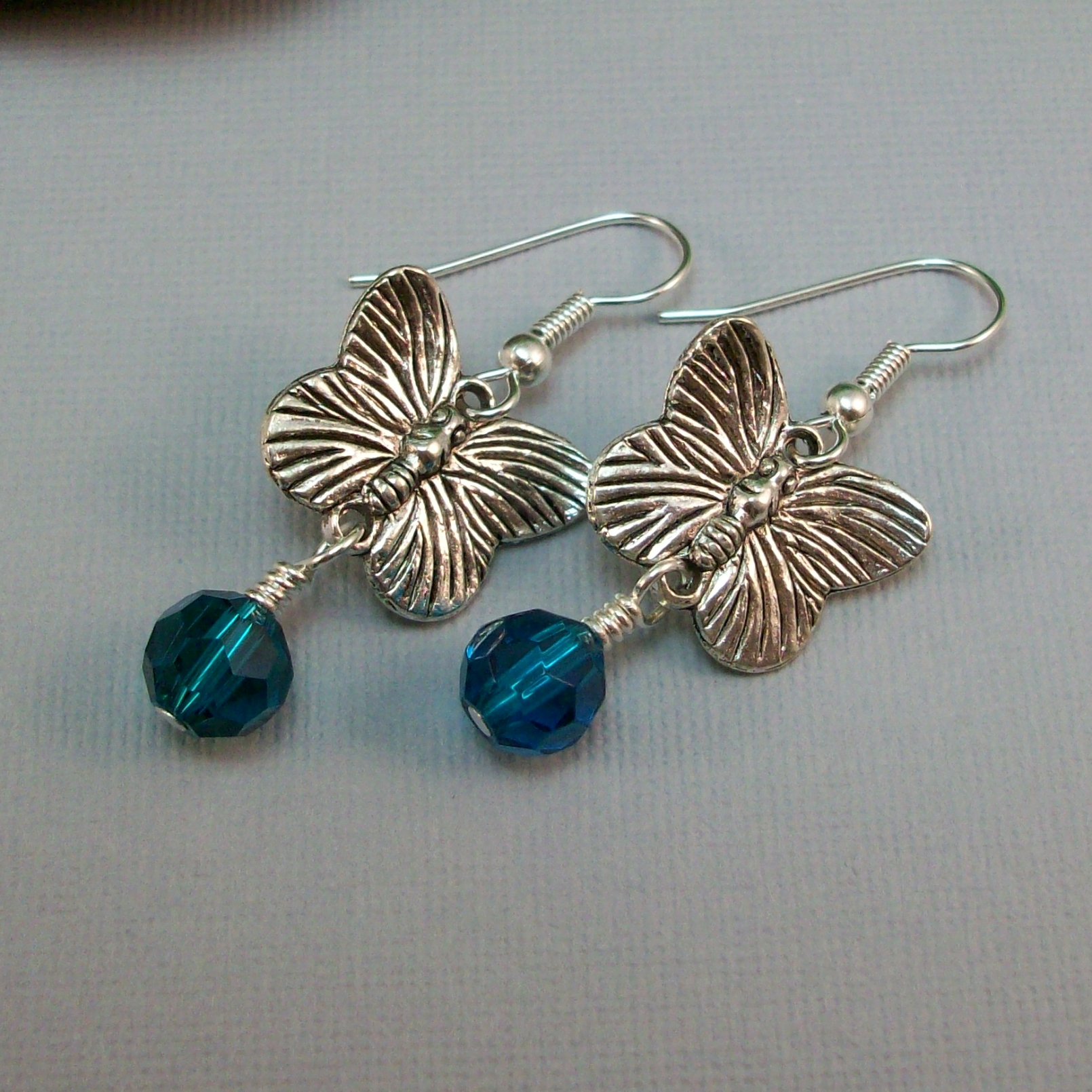 Butterfly Drop Earrings with Blue Zircon Crystal – Handmade Crystal Jewelry on Hypoallergenic Earwires