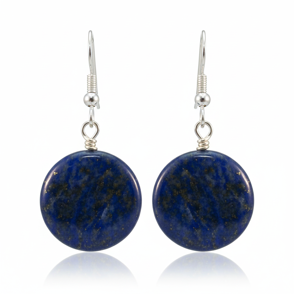 Imagine wearing a tiny fragment of the midnight sky, captured in these enchanting 14mm Lapis Lazuli coin earrings that shimmer with golden flecks of natural pyrite. Each genuine gemstone is lovingly hand-wrapped in silver wire and suspended from hypoallergenic surgical steel, dangling just an inch to catch the light with every move you make. More than just a beautiful accessory, Lapis Lazuli is a stone of ancient royalty and deep wisdom, long whispered to spark creativity, sharpen your intuition, and bring a sense of serene clarity to your busy world. Whether you are drawn to its historic roots as a Roman aphrodisiac or its power to balance the throat chakra, these earrings serve as a magical reminder to speak your truth and stay grounded in your own unique strength. They arrive ready to transform your energy and elevate your favorite outfit with a soulful, bohemian touch that feels just as good as it looks.
